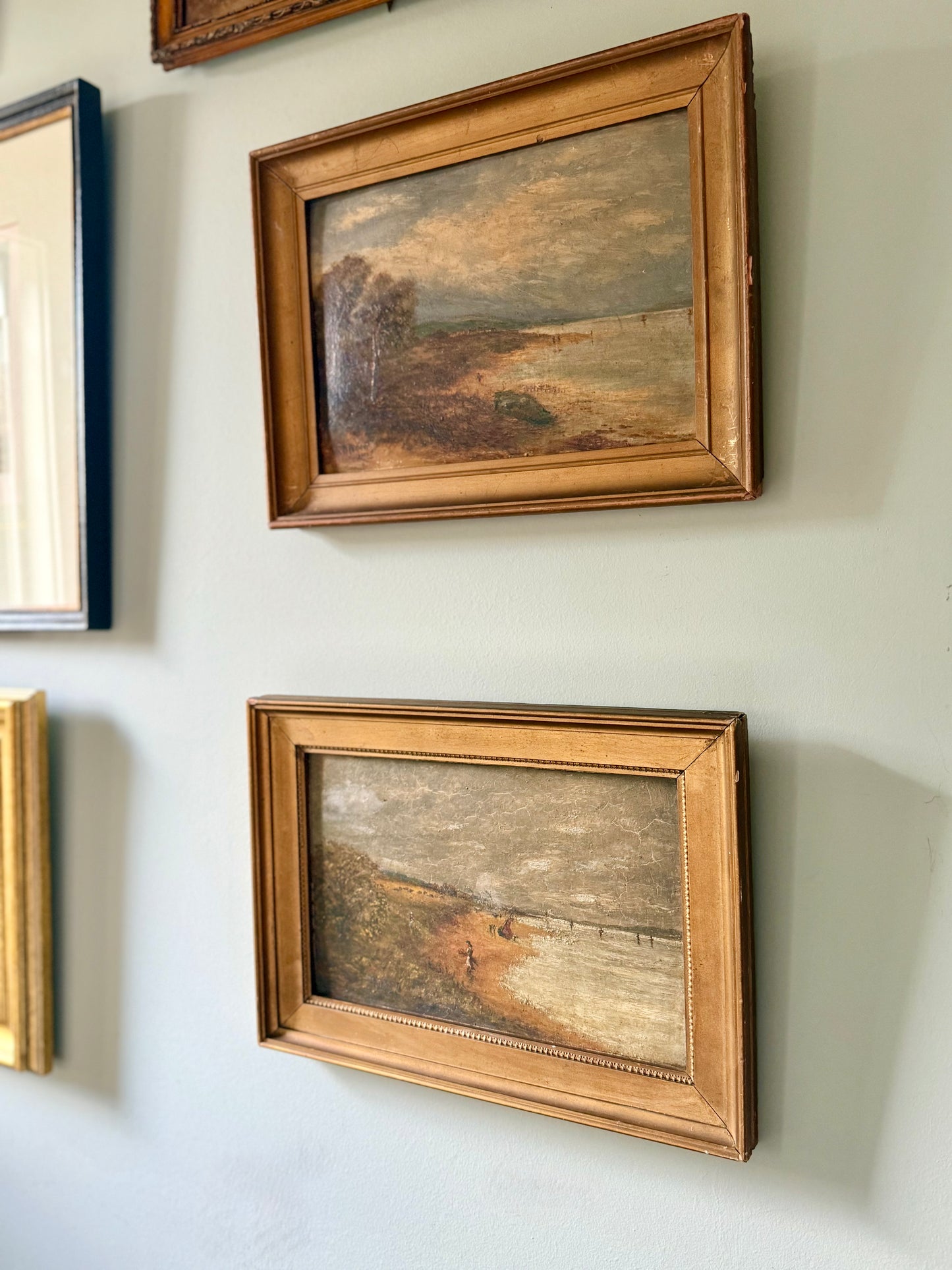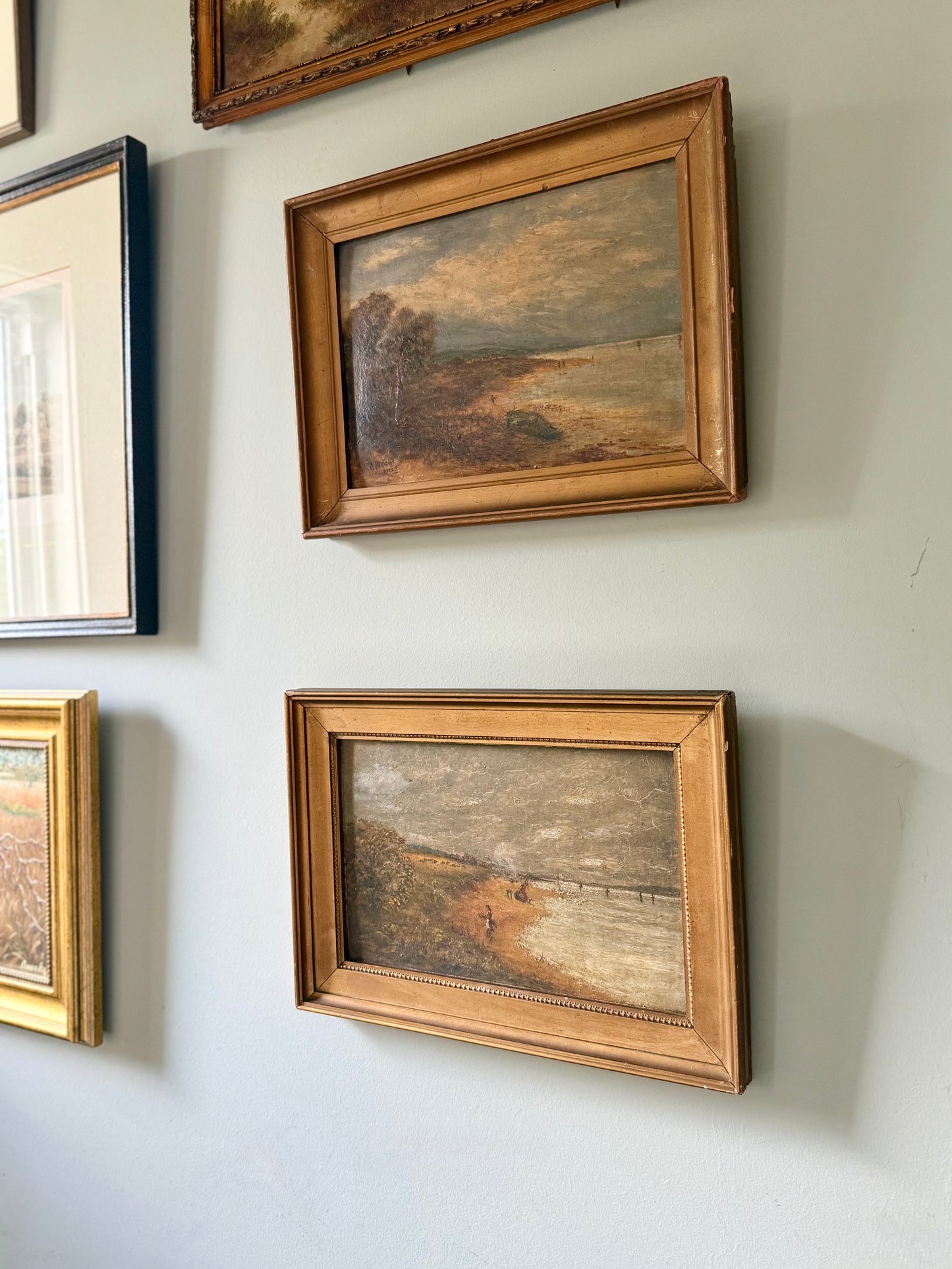 This pair of oil paintings are the perfect addition to any space. They are a bit impressionistic, still detailing beautiful seaside scenes from the south of Scotland. Lovely for inclusion into a gallery wall or understated accents in your home. Incredibly peaceful with pops of color, adding character and charm.